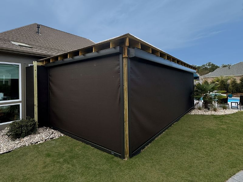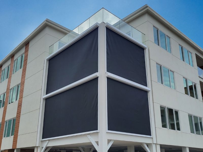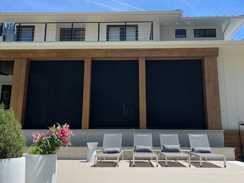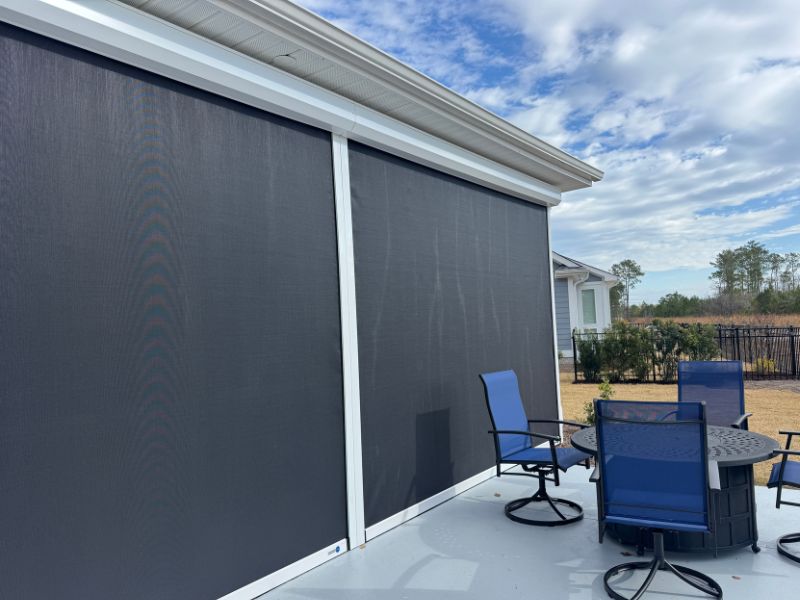 One of the most common questions we get about hurricane screens is “Can I see out of them when they are down?” The is, yes! You can see out but others can’t see in which provides wonderful privacy for those seeking the ability to use their outdoor space without everyone else seeing.